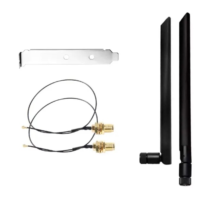 Антени підтримують дводіапазонну роботу (2.4 ГГц і 5 ГГц), що робить їх сумісними з усіма сучасними Wi-Fi адаптерами, включаючи Intel AX200, AX210, Qualcomm FastConnect, Broadcom, Realtek та інші. PCIe-заглушка дозволяє акуратно закріпити конектори SMA на задній панелі корпусу, що спрощує монтаж і покращує естетику.