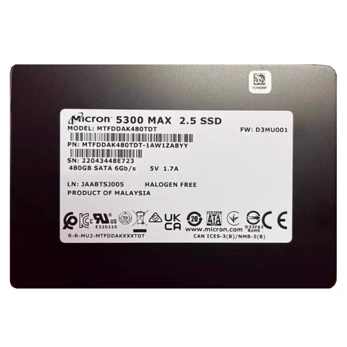 SSD Micron 480Gb SATA 2.5" (MTFDDAK480TDT) – твердотільний накопичувач корпоративного класу, розроблений для стабільної та передбачуваної роботи в серверних системах, робочих станціях і офісних ПК. Забезпечує високу надійність, швидкий доступ до даних і ефективну роботу при щоденних навантаженнях.
