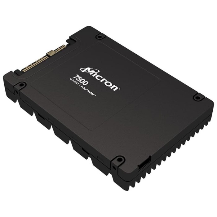 Форм-фактор U.3 (2.5") дозволяє використовувати накопичувач у сучасних серверних системах із підтримкою NVMe, забезпечуючи високу пропускну здатність і низькі затримки. Серія Micron 7500 PRO оптимізована для корпоративних навантажень, баз даних, віртуалізації та хмарних сервісів.