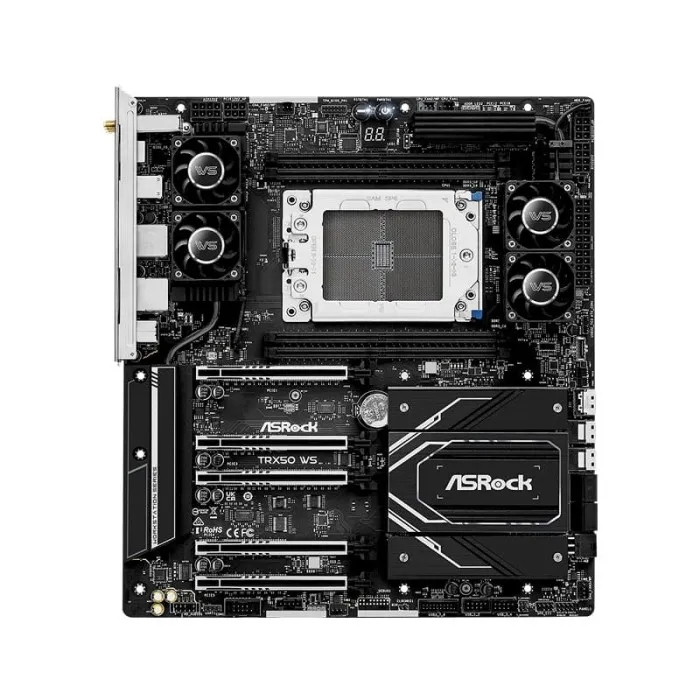 Материнська плата ASRock TRX50 WS sTR5 – це потужна серверна материнська плата формату E-ATX, розроблена для підтримки процесорів AMD Ryzen™ Threadripper™ PRO 9000/7000 WX-Series та AMD Ryzen™ Threadripper™ 9000/7000 Series на сокеті sTR5. Вона забезпечує високу продуктивність і масштабованість для професійних робочих станцій, що потребують великих обсягів пам'яті, високої обчислювальної потужності та надійності для виконання складних завдань, таких як 3D-моделювання, відеообробка та інші ресурсоємні додатки.