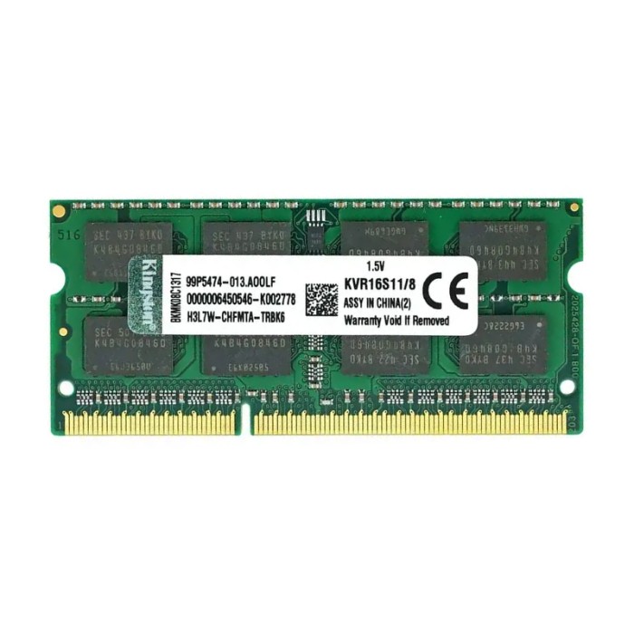 Оперативна памʼять Kingston 8Gb DDR3-1600 PC3-12800 2Rx8 (KVR16S11/8) – модуль форм-фактора SODIMM Non-ECC Small Outline, призначений для ноутбуків і компактних систем із підтримкою DDR3. Конфігурація 2Rx8 забезпечує стабільну роботу та хорошу сумісність із широким спектром платформ.