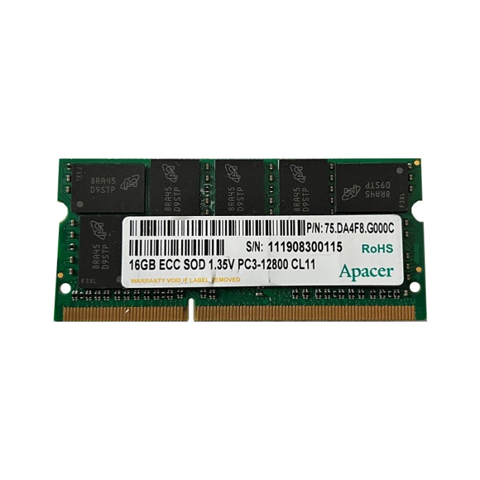Опис Оперативна пам'ять Apacer 16Gb DDR3-1600 PC3-12800 (75.DA4F8.G000C) SODIMM ECC Small Outline