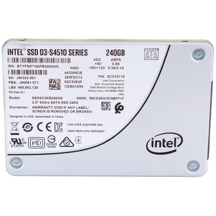 SSD Intel DC S4510 240 ГБ — это профессиональное решение для серверной инфраструктуры, обеспечивающее высокий уровень надёжности, защиту данных и стабильную производительность при любых нагрузках.