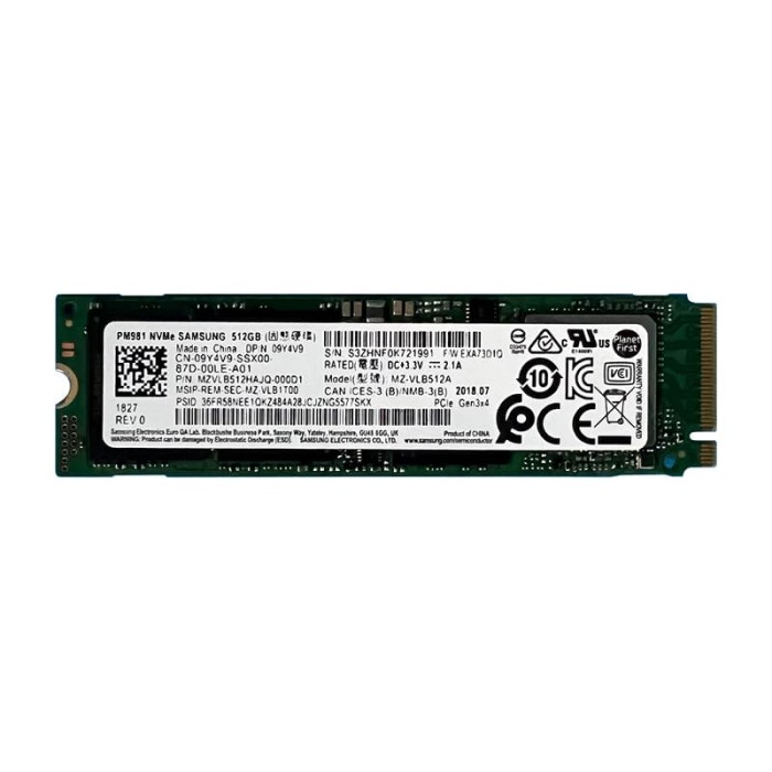 Основные характеристики Накопитель SSD Samsung PM981 512Gb NVMe M.2 Gen3x4 (MZ-VLB512A / MZVLB512HAJQ)