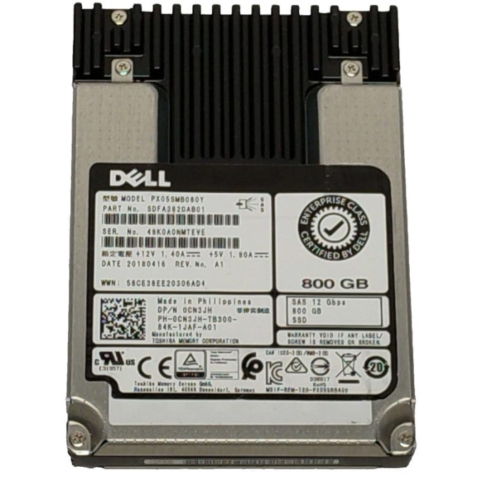 Накопитель SSD Dell OEM 800Gb SAS 12Gb/s (PX05SMB080Y / 0CN3JH) — это высокопроизводительный корпоративный твердотельный накопитель серии PX02SM, предназначенный для серверов и систем с интенсивной нагрузкой. Использование памяти eMLC NAND и интерфейса SAS обеспечивает максимальную надежность и стабильную работу в режиме 24/7.