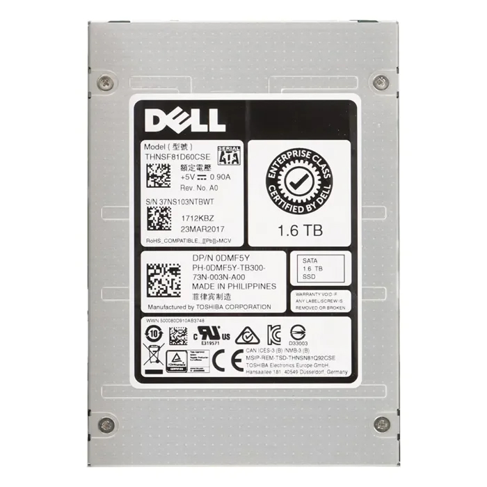Накопитель SSD Dell OEM / TOSHIBA 1.6Tb SATA (DMF5Y / THNSF81D60CSE) – это корпоративный твердотельный накопитель для серверов, систем хранения данных и профессиональной IT-инфраструктуры. OEM-модель Dell на базе Toshiba сочетает высокую надёжность, SATA-интерфейс и MLC-память, что делает её практичным решением для стабильной работы в серверной среде.