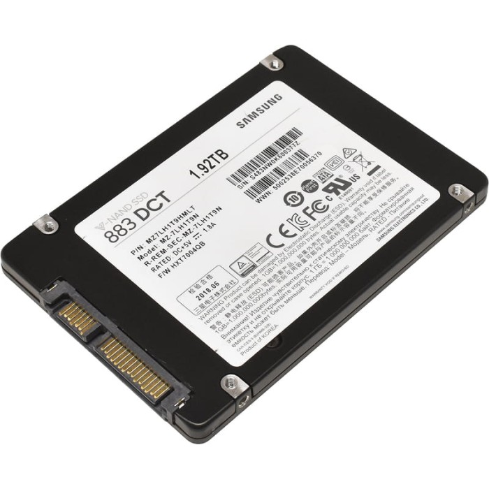 Накопитель SSD Samsung 883 DCT 1.92Tb SATA 2.5" (MZ-7LH1T9N / MZ7LH1T9HMLT) — это корпоративный твердотельный накопитель, предназначенный для серверов и систем хранения данных. Основан на памяти Samsung V-NAND TLC и обеспечивает стабильную работу в режиме 24/7.