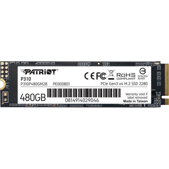 Patriot P310 480GB NVMe M.2 Gen3x4 (P310P480GM28) — это быстрый твердотельный накопитель, сочетающий производительность, энергоэффективность и надёжность. Благодаря контроллеру Phison PS5013-E13-31 и памяти 3D TLC NAND (176 слоёв), он обеспечивает стабильную работу даже при высоких нагрузках.
