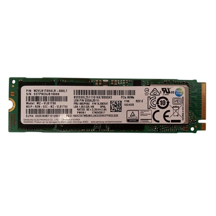Основные характеристики Накопитель SSD Samsung PM981 1Tb NVMe M.2 Gen3x4 (MZVLB1T0HALR / MZ-VLB1T00)