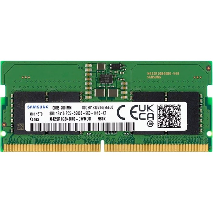 Samsung 8Gb DDR5-5600 PC5-44800 (M425R1GB4BB0-CWM) SODIMM Non-ECC Small Outline - это высокопроизводительный модуль оперативной памяти для ноутбуков, который обеспечивает отличную скорость 5600 МГц. Вот подробное описание вместе с ключевыми характеристиками этого продукта: