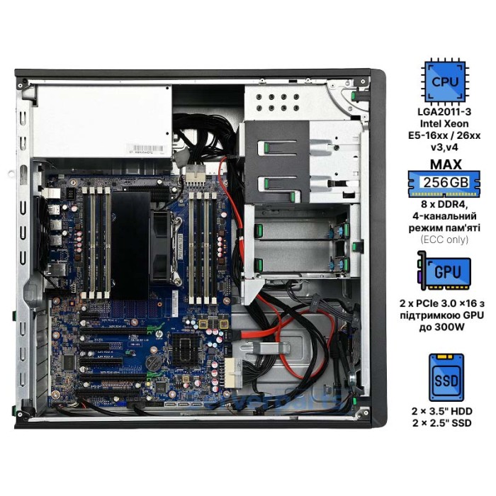 Создайте свой собственный сетап мечты на базе модели Z440 в качественном металлическом корпусе черного матового цвета форм-фактора 4U от компании HP. Все опции ограничены лишь вашей фантазией - в вашем распоряжении широкий ассортимент комплектующих. Так что не теряйте времени и начните свою сборку с выбора процессора для вашей системы. Станция совместима с процессорами компании Intel под сокет LGA2011-3 из линейки Xeon E5-16xx v3/v4, Xeon E5-26xx v3/v4, все они доступны для выбора в нашем конфигураторе.