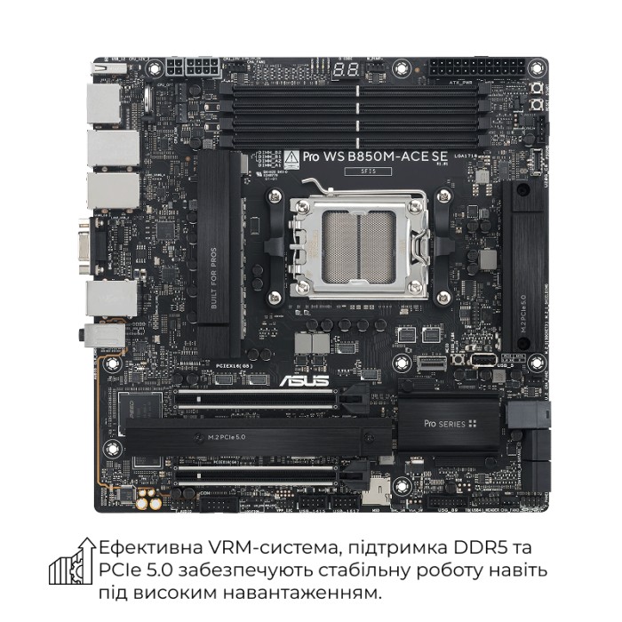 - Профессиональная материнская плата ASUS Pro WS B850M-ACE SE.