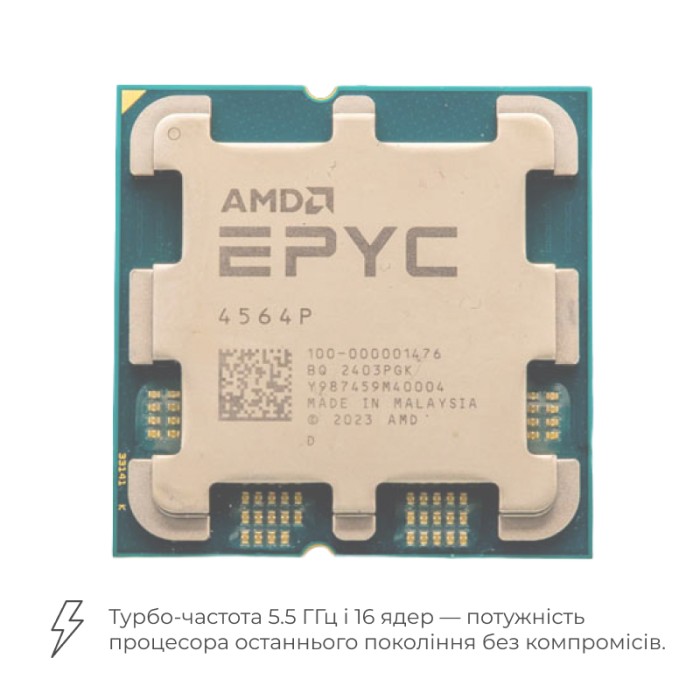 - Процессор AMD EPYC 4564P — 5.5 ГГц, 16 ядер.